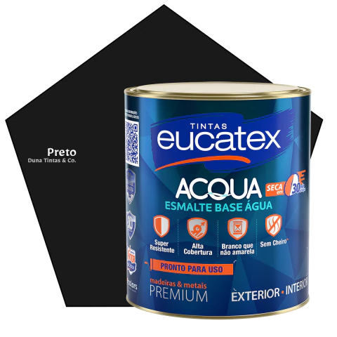Tinta Esmalte Base Água Preto Acetinado Eucatex 900ml